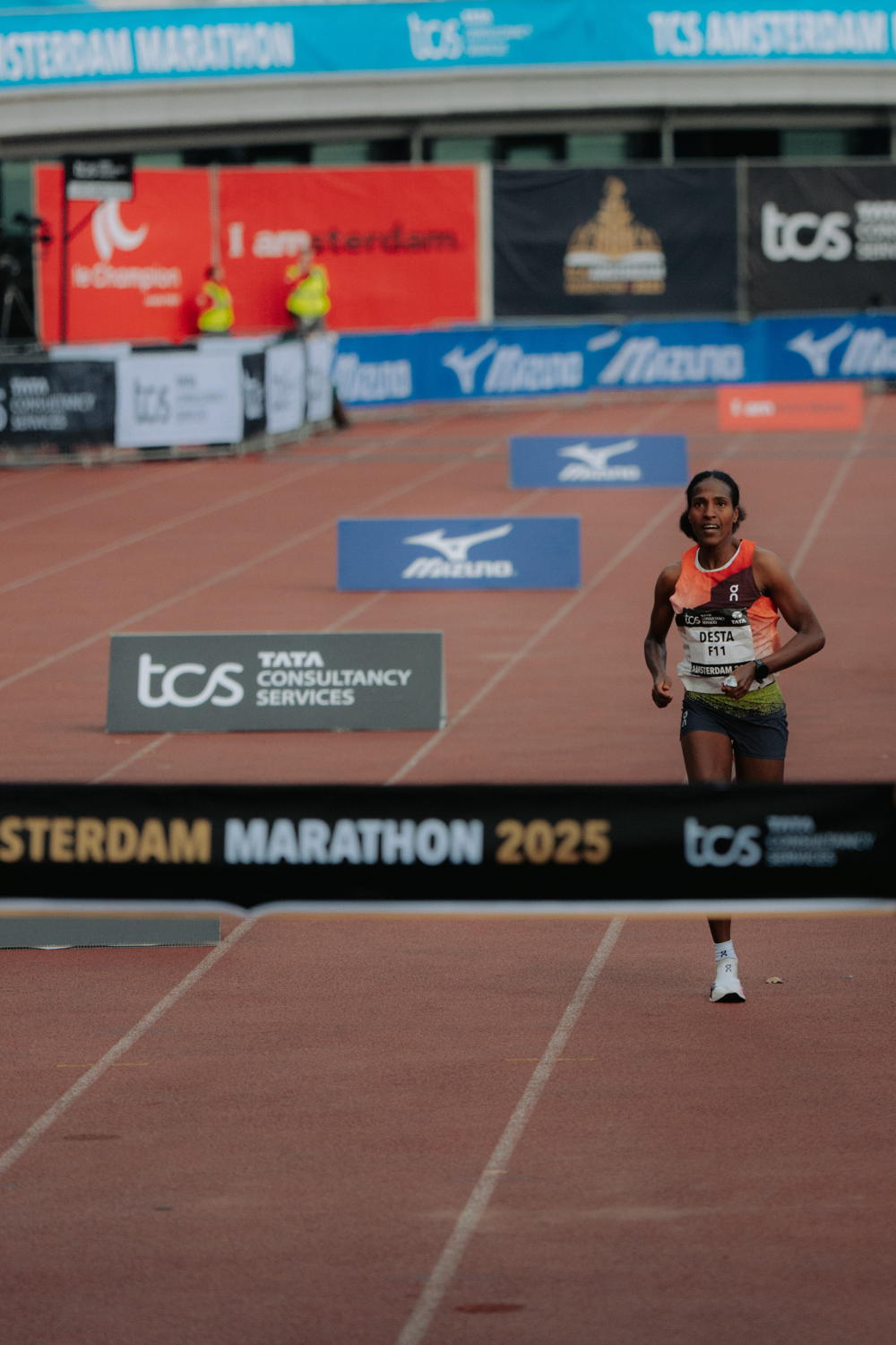 At the marathon in Amsterdam, Aynalem Desta (ETH) claimed the win in 02:17.37, breaking her old PB by almost five minutes. The Ethiopian athlete, who only ran her first marathon last December, sat inside an Ethiopian group that threw the first 10k and the halfway point. As the kilometer marker hit 30km, there were only four left, and with a late push, Desta pulled clear, taking the win ahead of her fellow countrywomen.