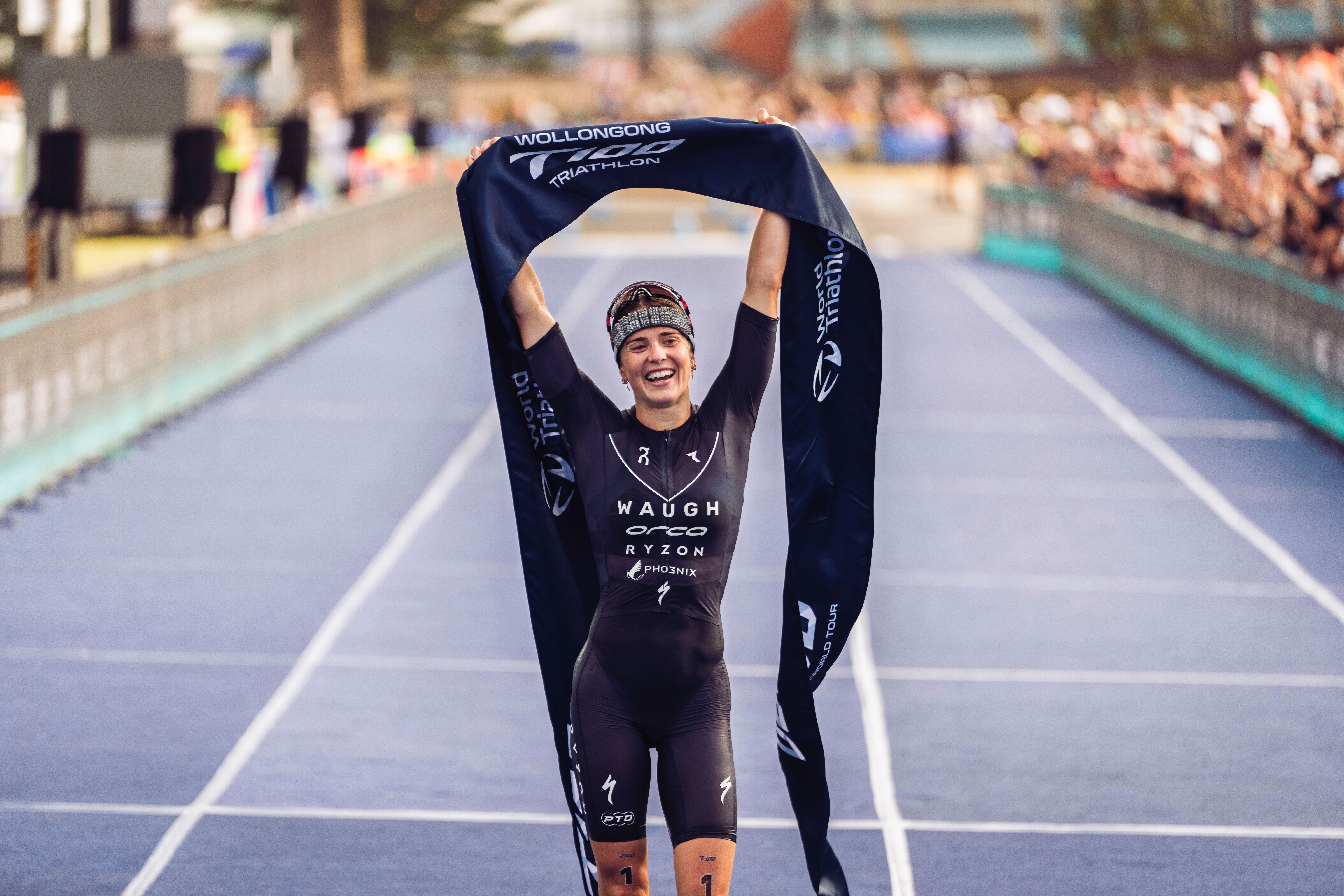 Fellow On triathlete Kate Waugh (GBR) was also victorious in Wollongong, this time on the T100 Distance. In the front group on the swim, she moved to the head of the pack on the bike and never looked back on the run. She was over four minutes clear of second place Perez Sala as she started the last of the seven laps and never let that lead slip to win her second race of the season after her vicotry in Singapour. Ashleigh Gentle powererd past Perez to claim silver, finishing six minutes behind Waugh.